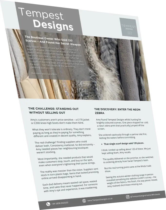 UK Born, Globally Worn – How Tempest Designs built a thriving wholesale business with boutique owners. One scarf. 120 sales. Read Amy's story.